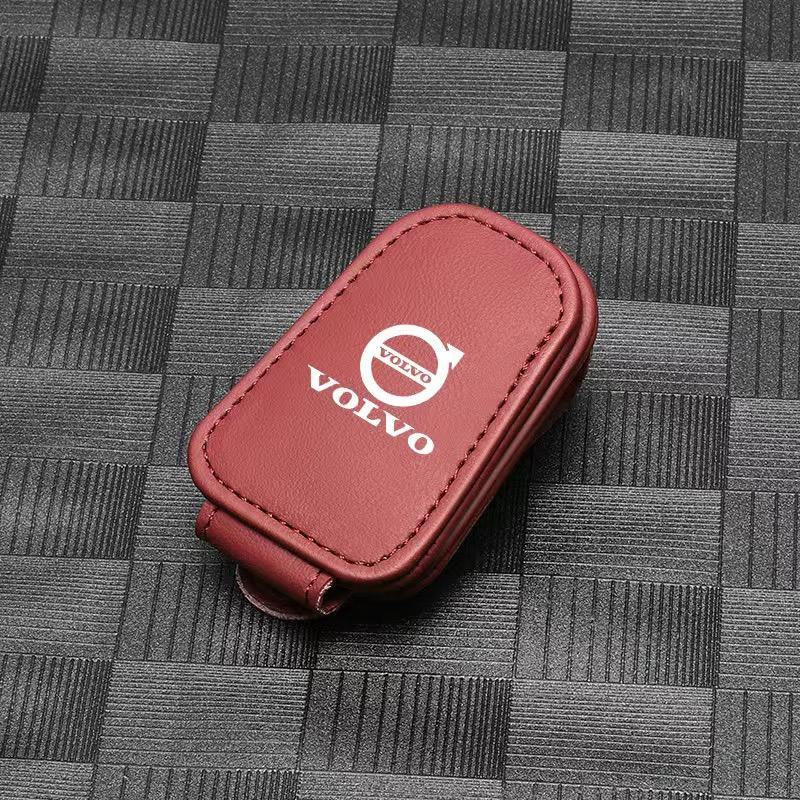 > ボルボ サングラスクリップ 車用収納 車載サングラスホルダー 眼鏡ホルダー PUレザー サンバイザー 取付簡単