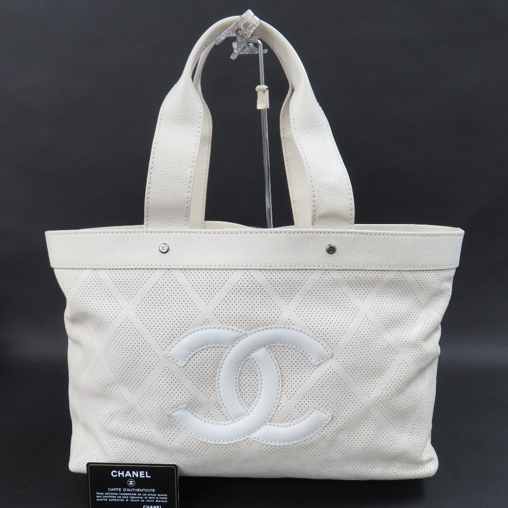 - 203344★1円スタート★CHANEL シャネル 極美品 ココマーク パンチング トートバッグ ヴィンテージ ハンドバッグ カーフ ホワイト