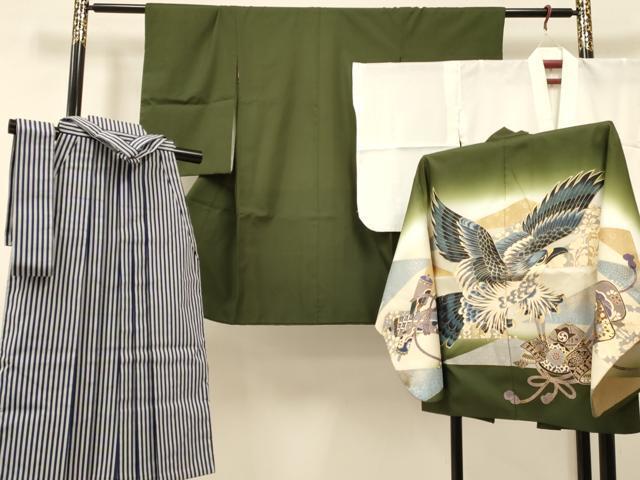 - 平和屋着物[]七五三 男の子 祝着・羽織・長襦袢(単衣)・行灯袴セット 鷹 鷲 兜 暈し染め 金彩 洗える着物 DAAS9032ma