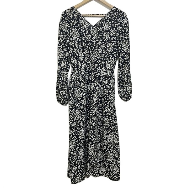 - スローブイエナ SLOBE IENA - 黒×白 レディース 長袖/ロング/花柄/ウエストゴム ワンピース