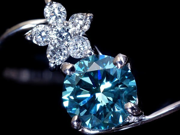 - 1円~【ジュエリー極】瑞々しい2色の輝き!大粒極上1粒ブルーダイヤモンド0.632ct&脇ダイヤ0.10ct 高級K18WGリング k961rl【送料無料】