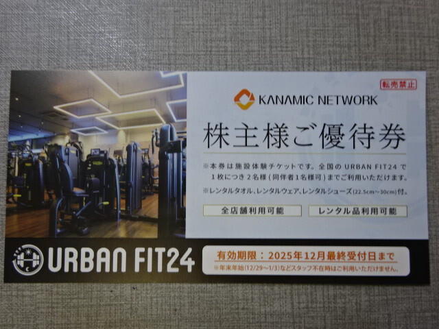 - 最新 カナミックネットワーク 株主優待 券 URBANFIT24 施設体験チケット 1枚 アーバンフィット24 2025.12月最終営業日迄