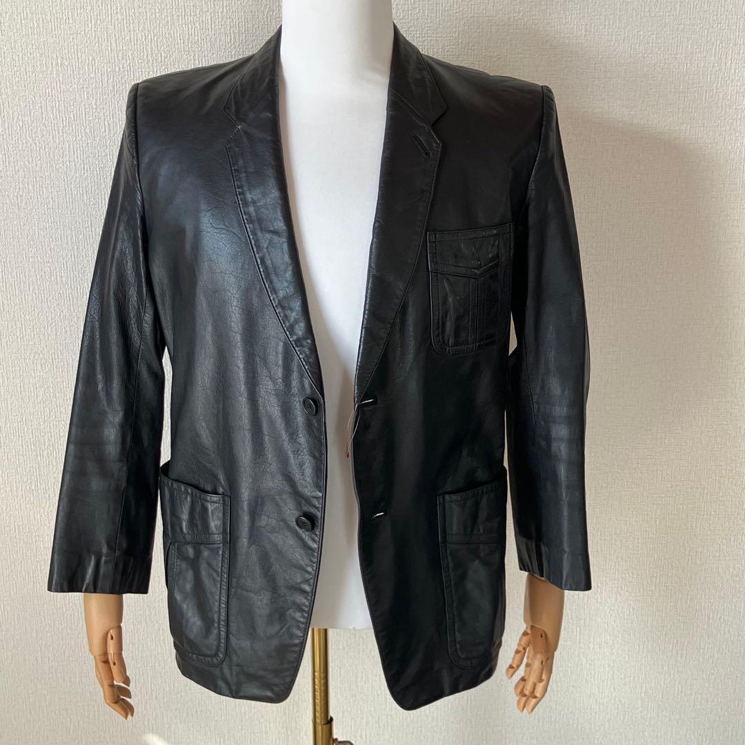 - 【本革】 レザー ジャケット MANLY テーラード 牛革 カウレザー M 黒 ブラック