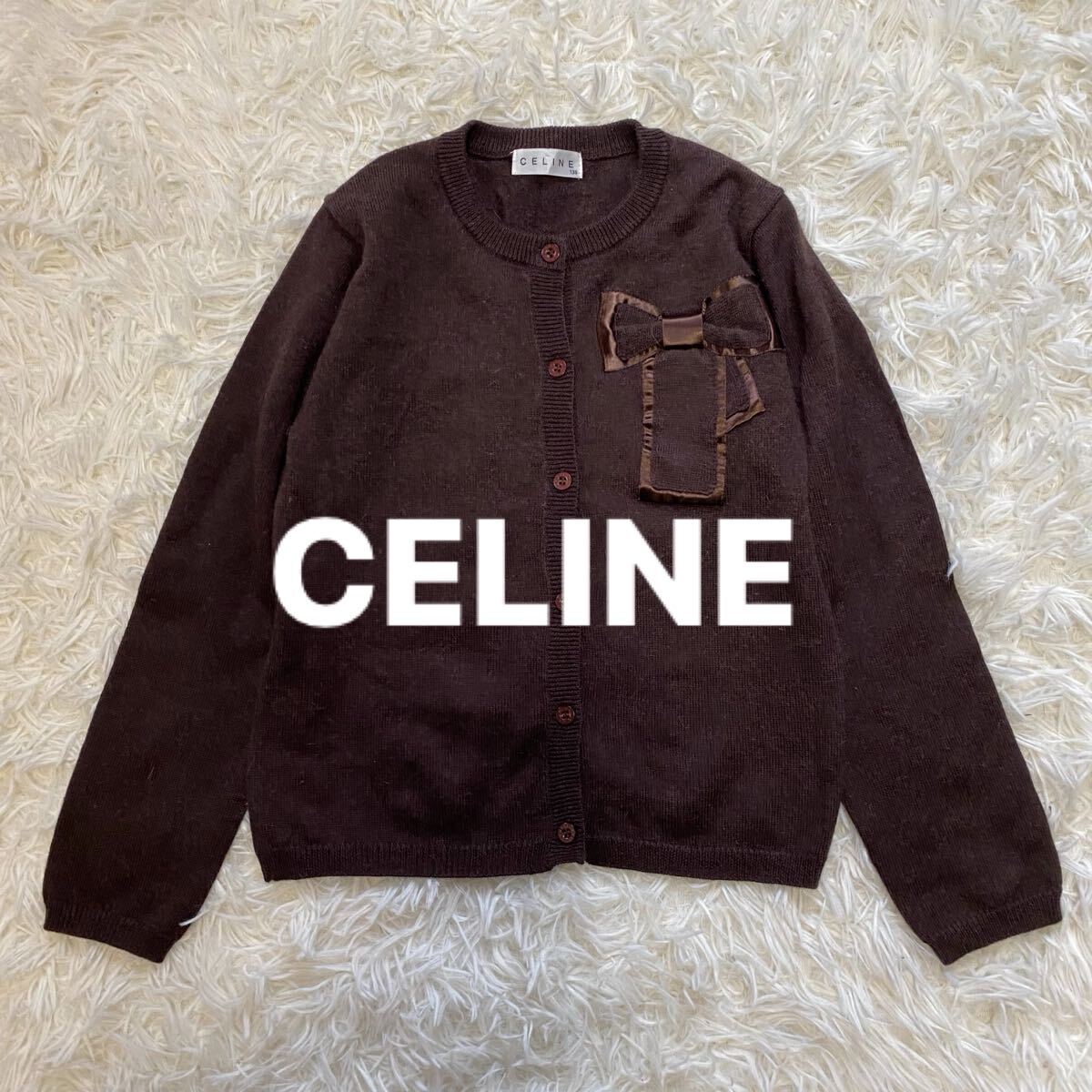 > 3点送料無料☆ CELINE セリーヌ 可愛い子供服 ボタンロゴ リボン ニットカーディガン 130 女の子 女児