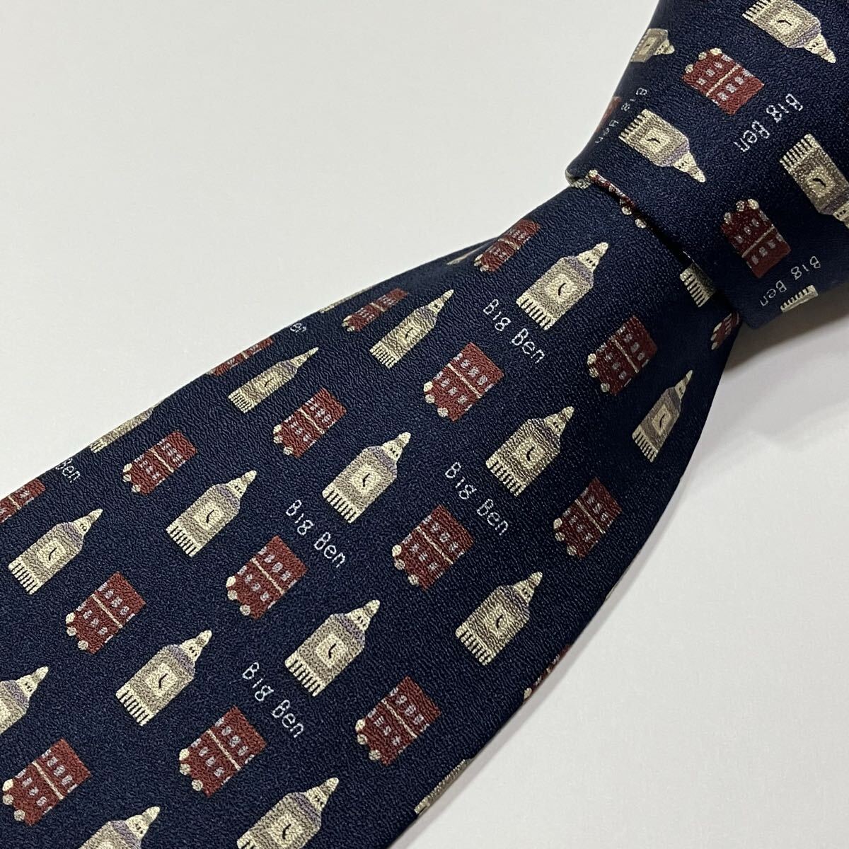 - ビッグベン バス シルク ネクタイ 古着 ネイビー 631-3