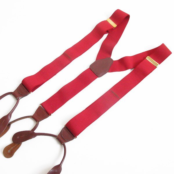 - CAS W-GERMANY/伸縮素材×レザー/ボタンタブ式/Y型 サスペンダー/赤系/メンズ/Yバック/ブレイシーズ/ビジネス/バンカー/投資家/D71