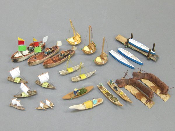 - 【心庵】盆景 添配 銅製・陶製・木製/舟他 まとめて23点 ミニチュア A1452
