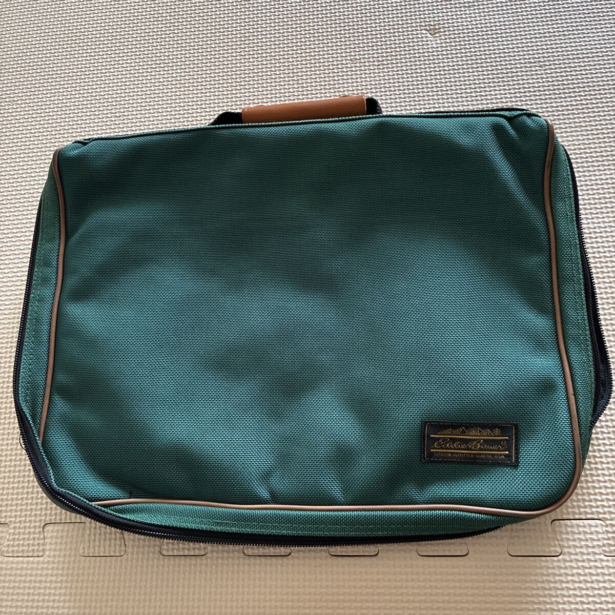 > 80s 90s【Eddie Bauer】ブリーフケース 黒タグ グリーン ビジネスバッグ 手持ち鞄