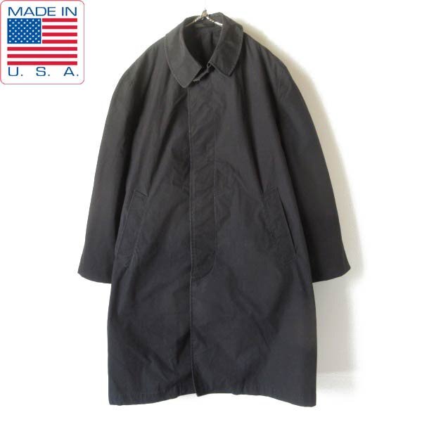 > 70s USA製 実物 米軍 US NAVY レインコート 内部ステンシル入り 黒 L-S チンストラップ ブラック アメリカ製 ビンテージ D150-18-0113ZVW