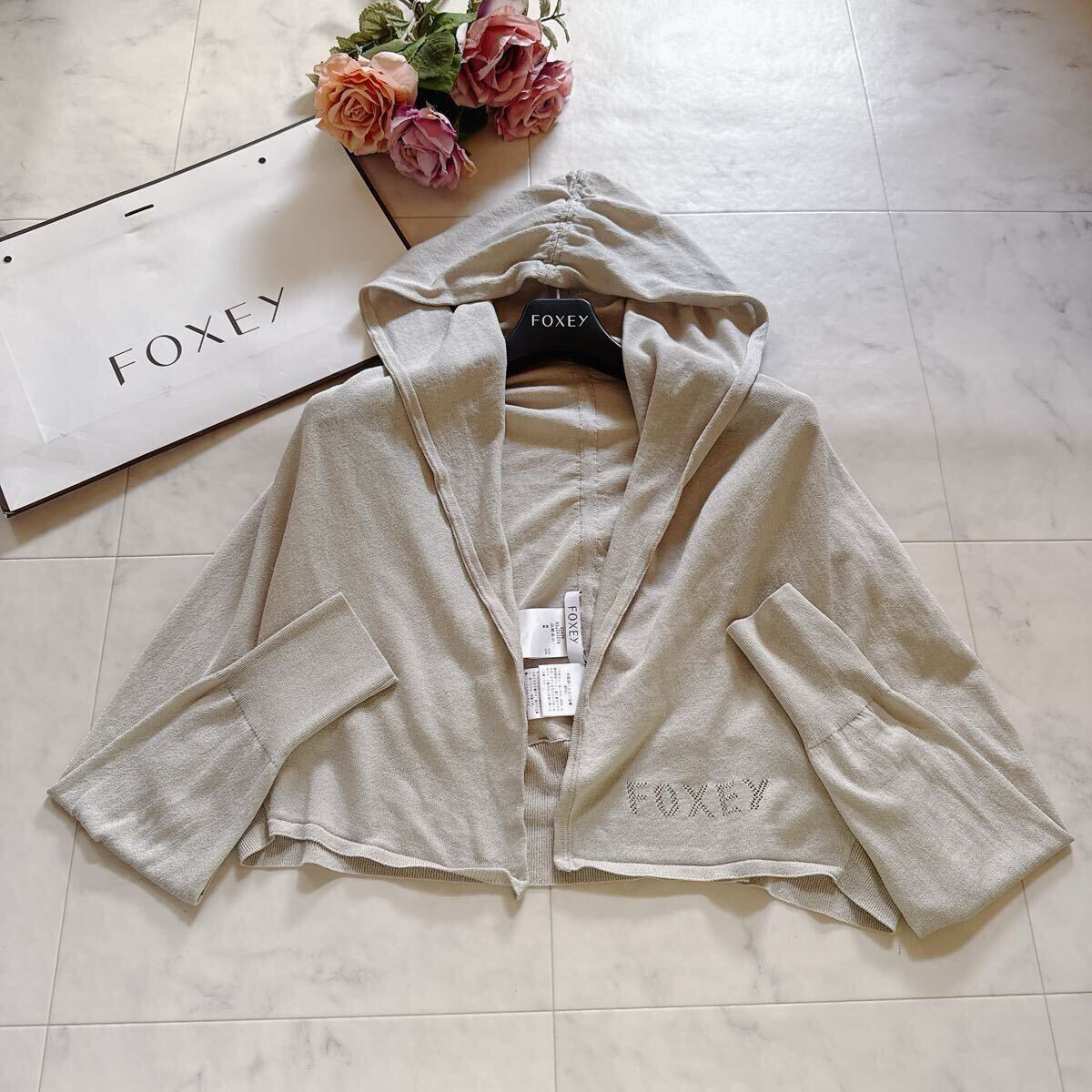 > FOXEY フォクシー★'23年 定価7.8万★パーカ ゴールデンブルーム カーディガン ブランドロゴ入り★43439★プラチナ