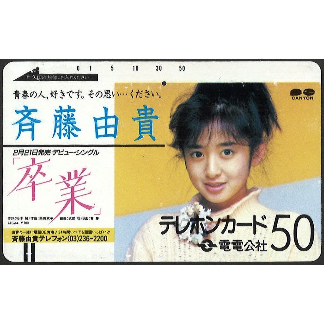 - 斉藤由貴『卒業』電電公社 フリー 110-119 贈呈 テレカ テレホンカード 50度数 ※使用途中 ◆おたからや【Q-B84932】