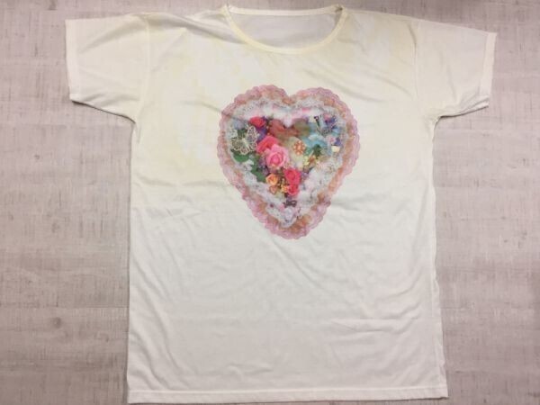 > レトロ ガーリー レース ブーケ バラ 薔薇 ローズ パール ハート 半袖Tシャツ レディース タグ等なし オーバーシルエット 白