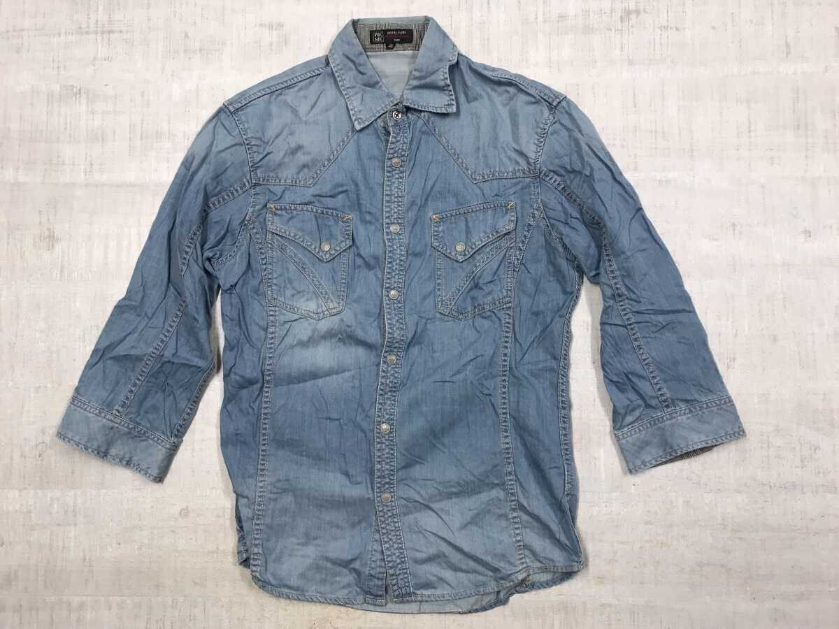 > ミッシェルクラン オム MICHEL KLEIN HOMME レトロ アメカジ スナップボタン 七分袖 デニム ウエスタン シャツ メンズ コットン混合 46 青