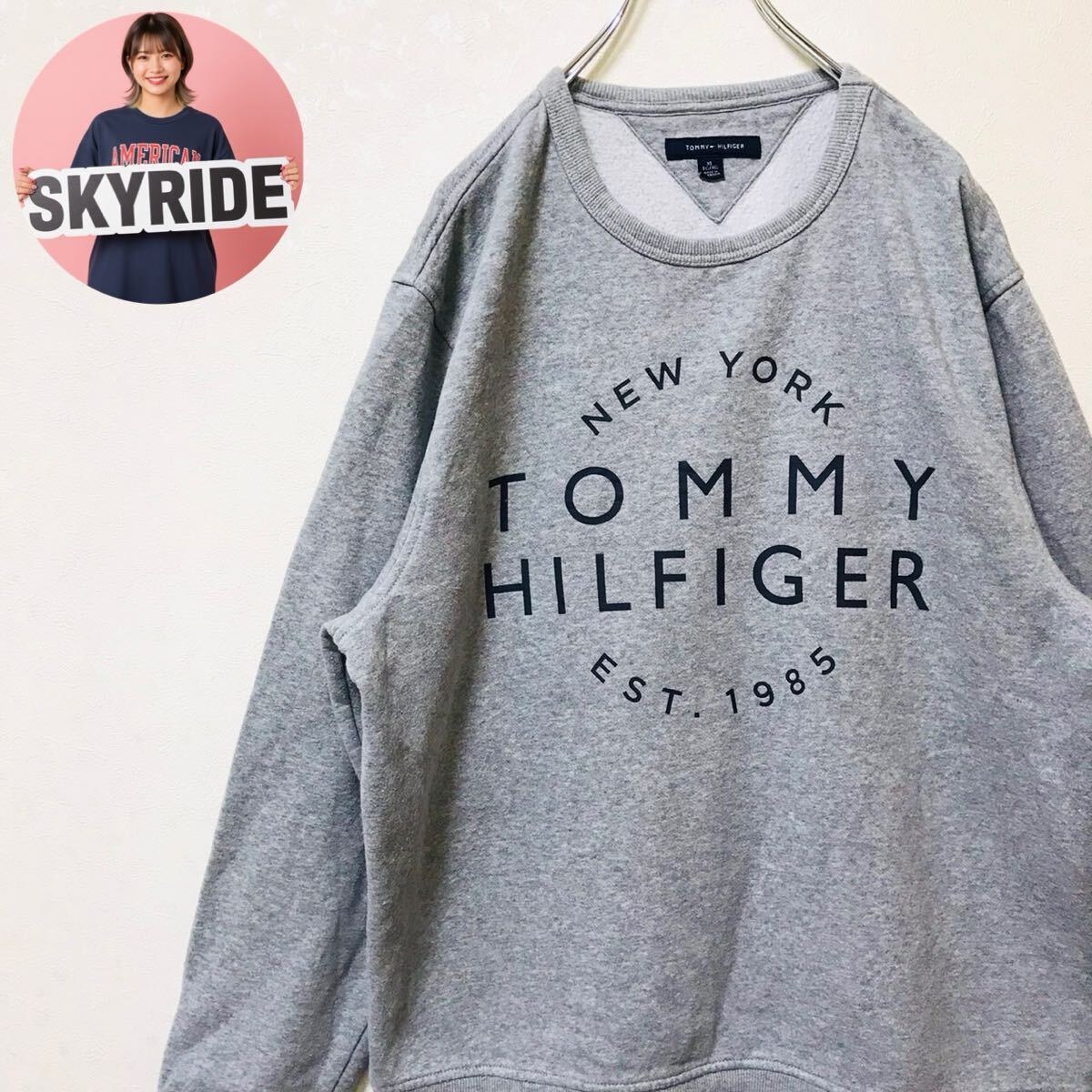 - 美品 TOMMY HILFIGER トミーヒルフィガー Y2K スウェット トレーナー 刺繍ロゴ XL グレー 裏起毛 ビッグシルエット 通年着用可 #TT0390