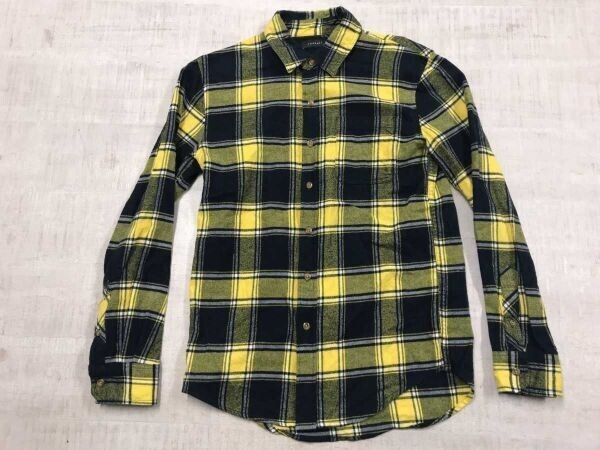 > ロシェル roshell ヴィジュアル系 ネオお兄系 サーフ ストリート 00s 古着 スリム 長袖 チェック シャツ メンズ 綿100% M 黄色 紺