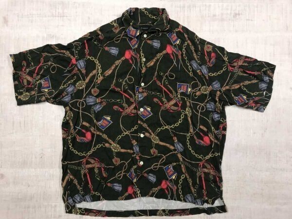 > レイジブルー RAGEBLUE アーバンストリート チェーン ベルト タッセル アクセサリー柄 プリント 半袖 ガラシャツ メンズ レーヨン100% M 緑