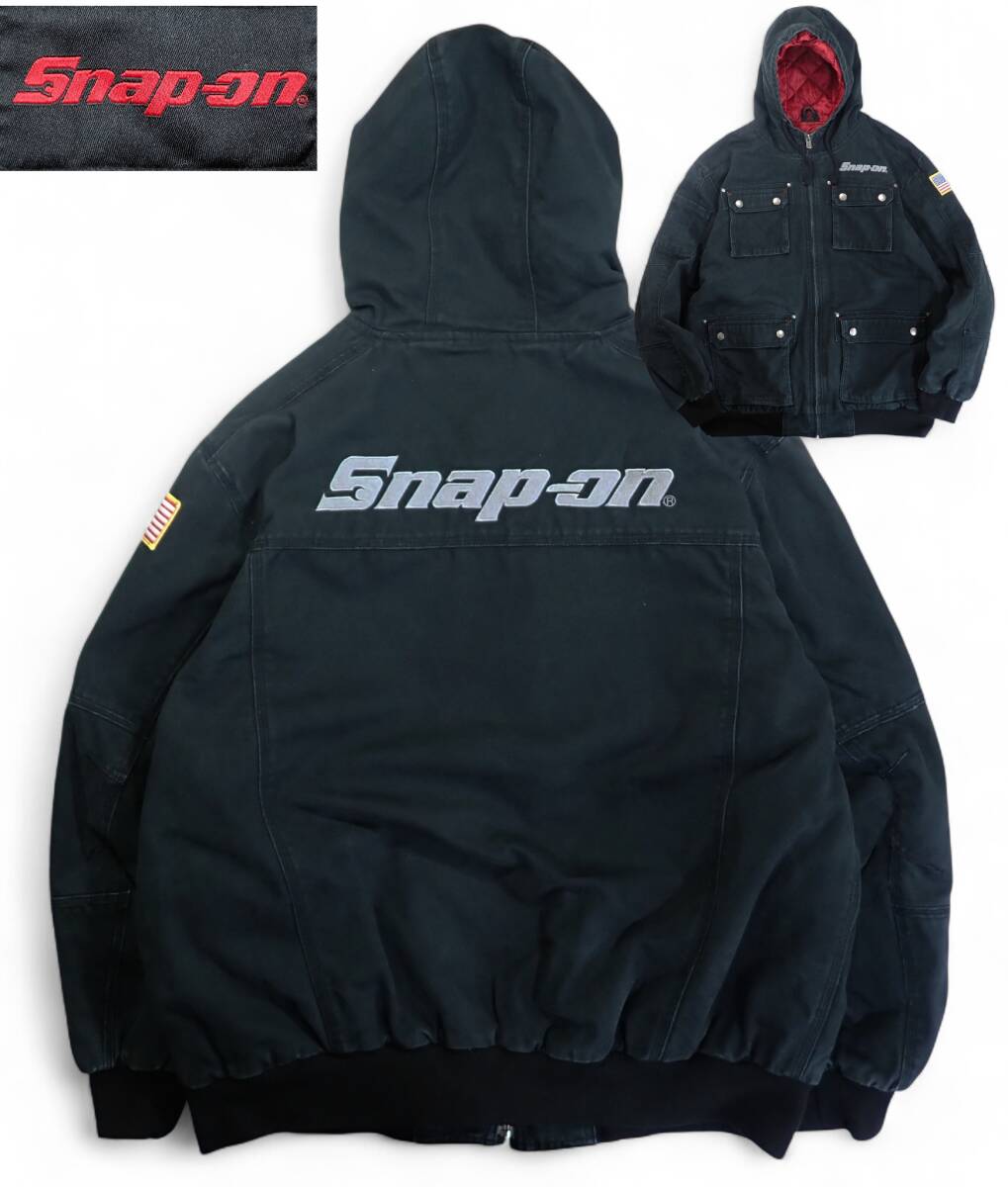 - 良好 Snap-onオフィシャル フード付ジャケット XL●ダック地 中綿キルティング 両面刺繍 フーディ ジャンパー ブルゾン●洗濯済●古着7155
