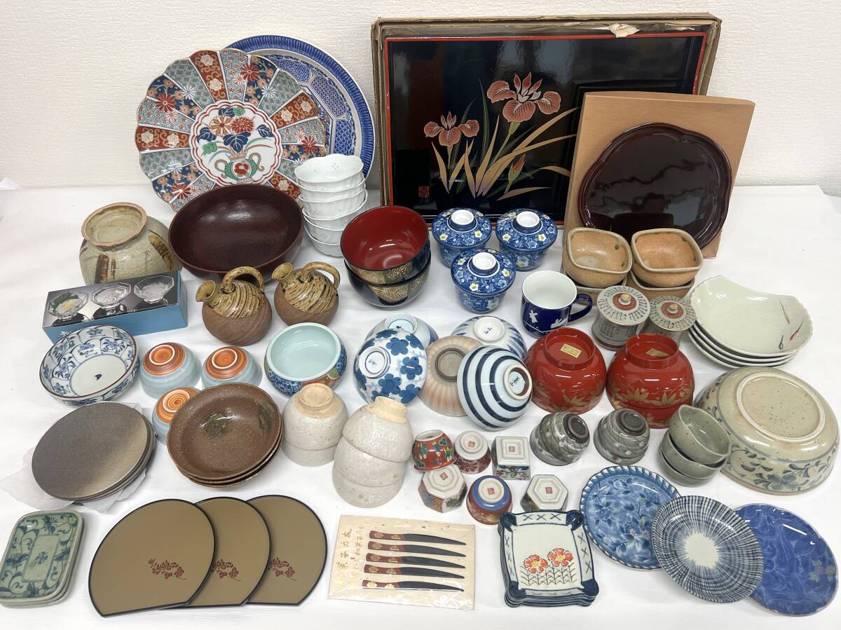 - 未使用 ブランド和食器多数!大量まとめ 90点以上セット!九谷焼 有田焼 たち吉 越前焼 萩焼 盛り皿 小皿 茶碗 茶器 酒器 お盆 陶器 漆器