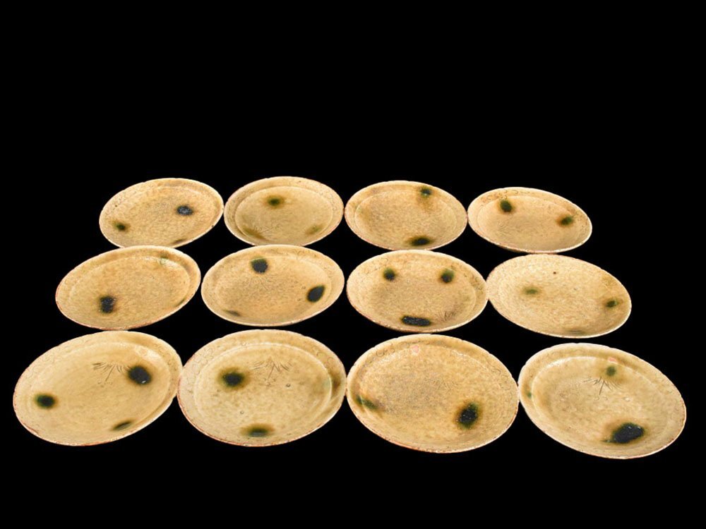 > 【雲】某名家委託品 加藤作助 黄瀬戸 銘々皿 12客 直径12.5cm 古美術品(小皿懐石料理道具)BY5680 LTDjhg