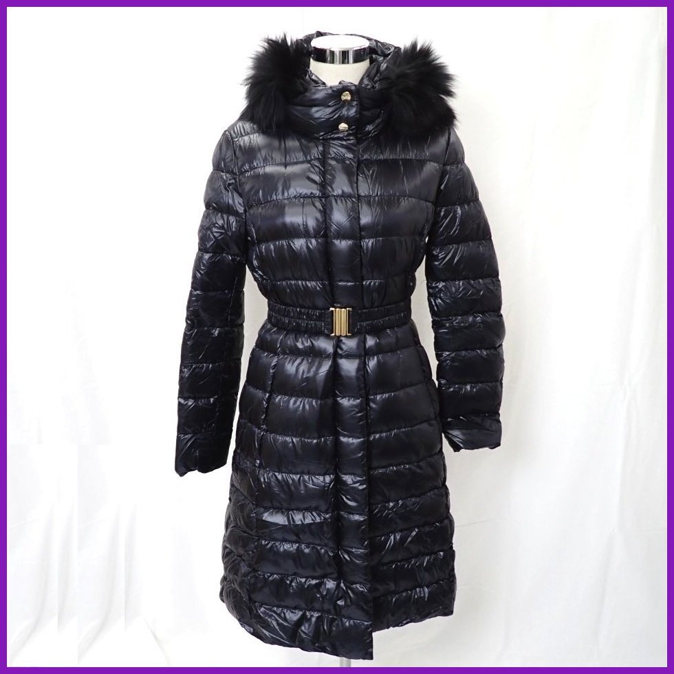 - ★HERNO/ヘルノ ロングダウンコート 44/レディースL相当/ブラック/ナイロン100%/フード・ファー着脱可能/ベルト付き/PI0484D&2129400044