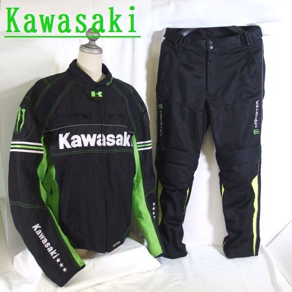 - 【良品】Kawasaki モンスターエナジー Racing Team XL ジャケット/CROSS-BORDER L パンツ 上下セット バイクウェア カワサキ/120サイズ