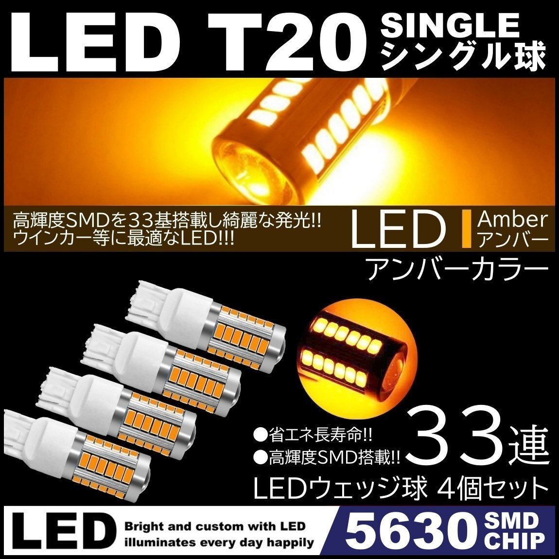- 高輝度 33連LED T20 シングル アンバー ウインカー コーナーランプ ターンランプ 4個