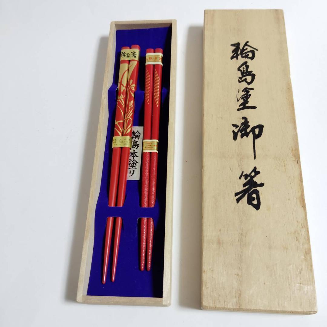 - 赤い天然木製箸 金色模様入り 木箱付き 贈り物 和食器 伝統工芸