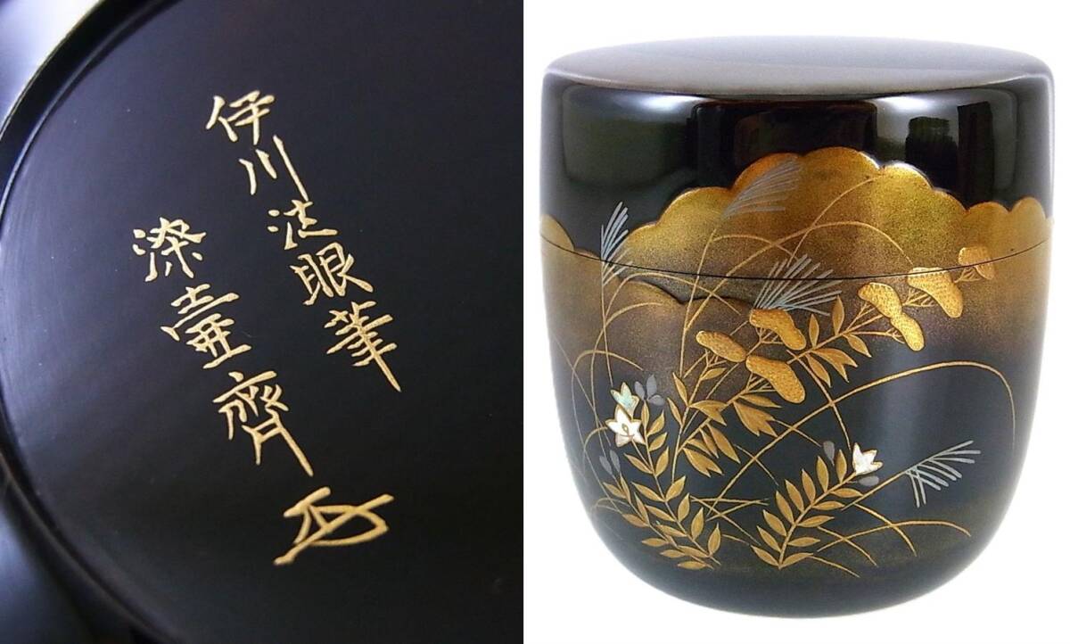 - 松江茶人の愛蔵品 小島漆壺斎(漆壷齊)作 六十九翁 共箱 伊川法眼筆 秋野棗 11/3(月)終了