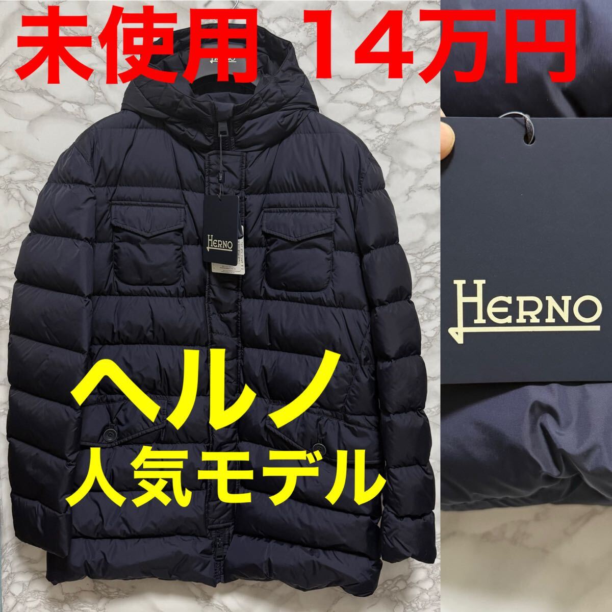 > ヘルノ HERNO 未使用 ダウンジャケット ミドルダウン 4ポケット ネイビー 紺色 POLAR-TECH サイズ54