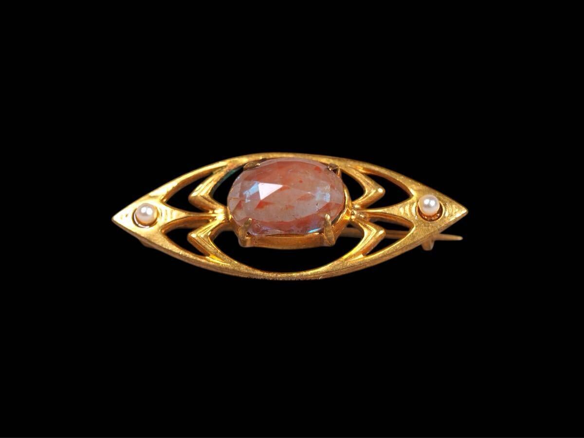 20世紀初頭頃に作られた大変希少価値の高いサフィレットガラスと天然真珠(シードパール)による素晴らしいブローチです。