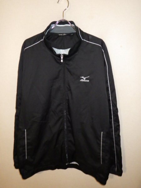 - z118 MIZUNO ミズノ ゴルフ ロゴ刺繍 ナイロンジップジャケット 黒色 メッシュ裏地 サイズ3L ビッグサイズ