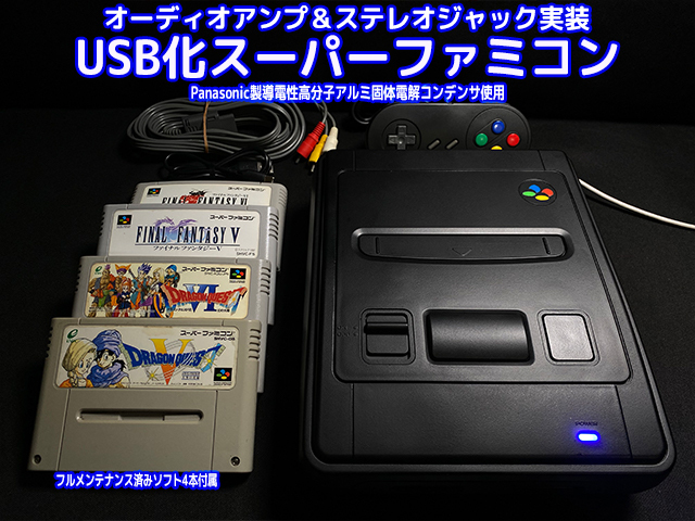 - [1円スタート] Nintendo Super Famicom カスタム スーパーファミコン 本体 (USB-C, オーディオアンプ、OS-CON) +ソフト4本 [F207]