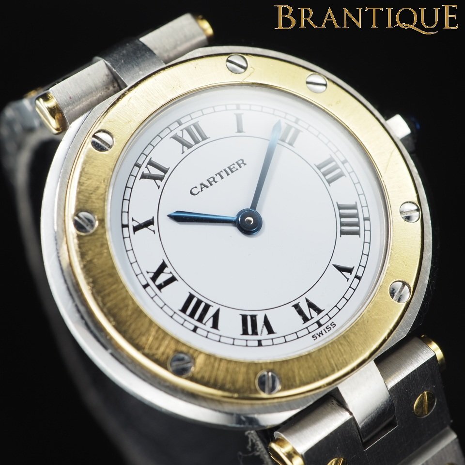 - ◆1円~◆ YGベゼル Cartier カルティエ サントスラウンド ラウンド型 YG/SS QZ 電池交換済み USED レディース 腕時計 「27888」