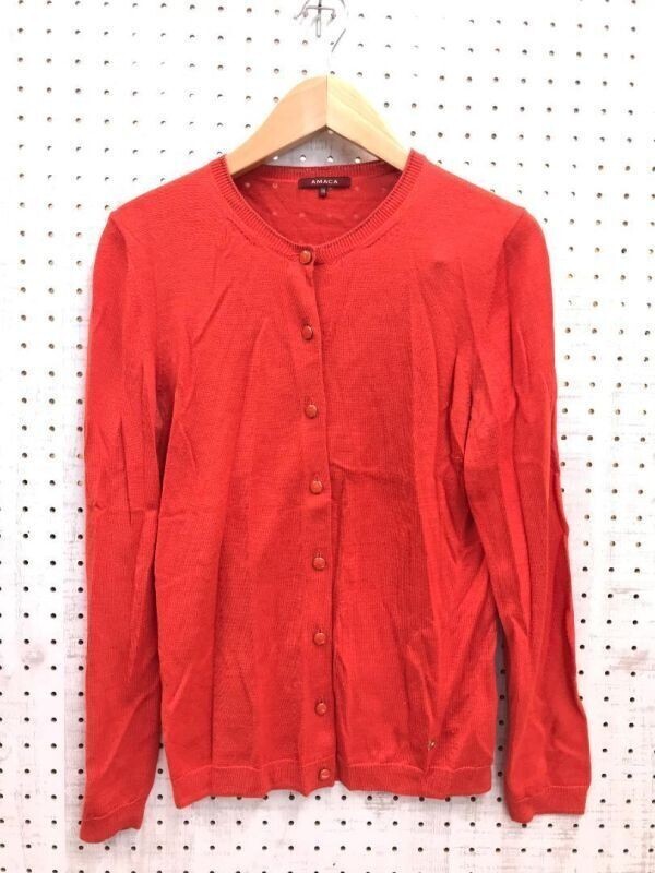- AMACA アマカ トラッド シルク70% ウール30% クルーネック ハイゲージ ニット カーディガン 良カラー レディース サイズ38 オレンジ