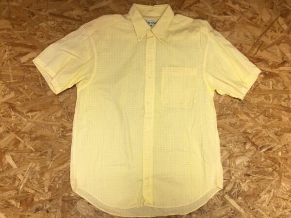 - ARINE ROGAN レトロ カジュアル ギンガムチェック 半袖ボタンダウンシャツ メンズ コットン100% M 黄色