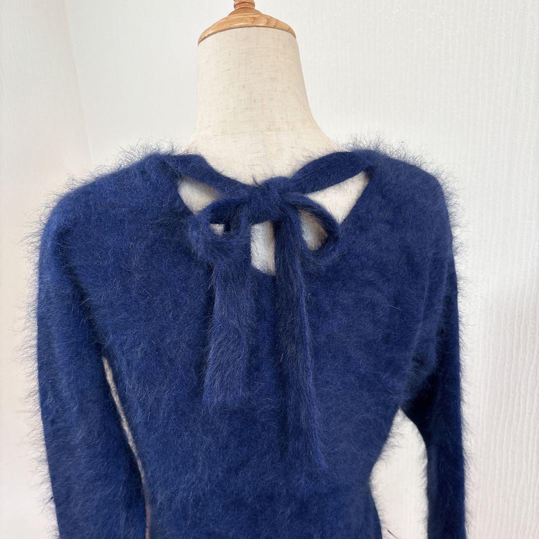- Emma Taylor エマテイラー アンゴラ ニット バックリボン フリーサイズ セーター 長袖 ネイビー 紺トップス Vネック レディース