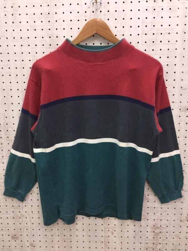 > FUNKY BASS ファンキーバス シティボーイ ストリート 古着 切替 太ボーダー ワイド モックネック カットソー ロンT 長袖Tシャツ メンズ M