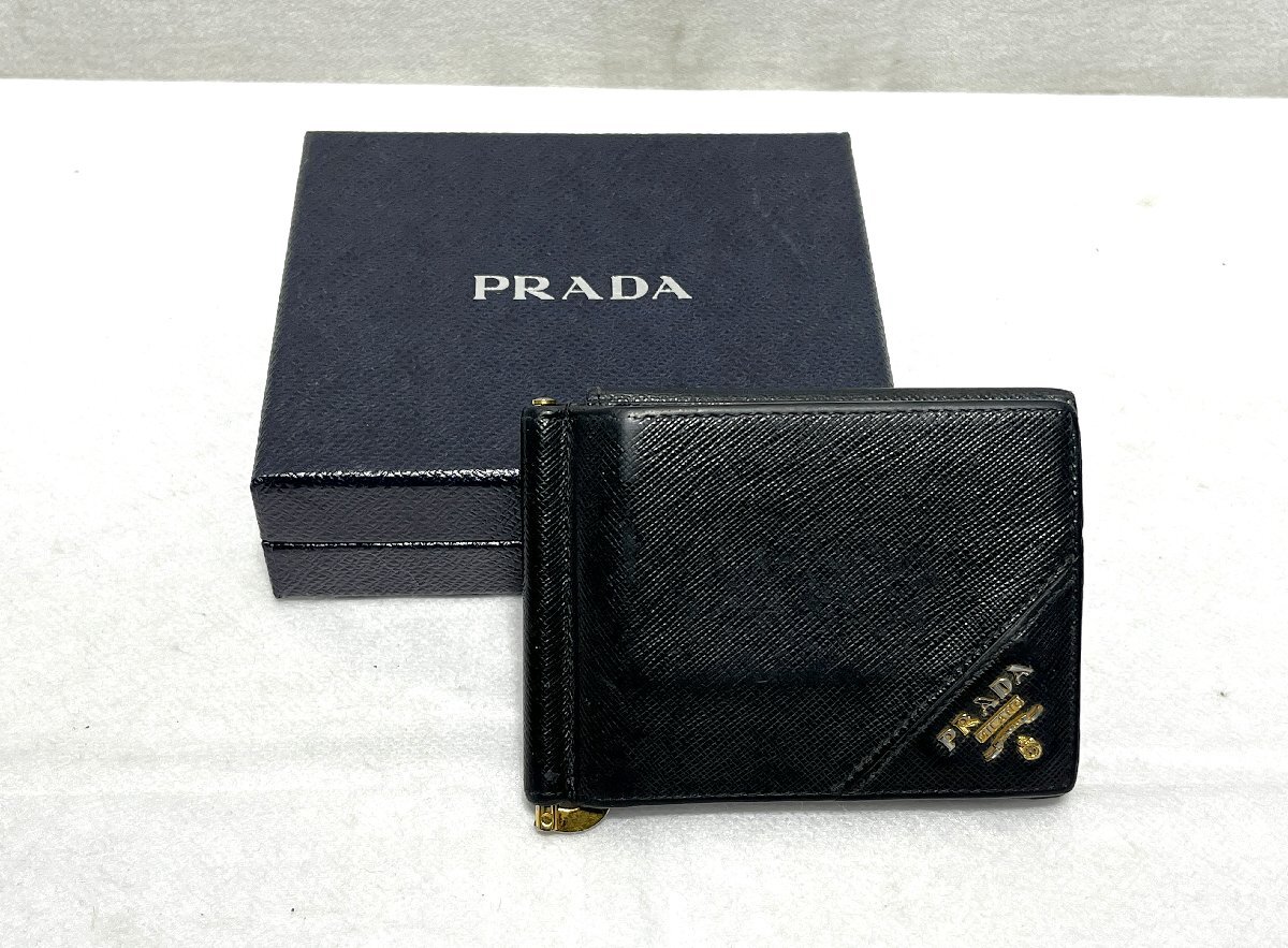 > ▽PRADA プラダ カードスロット12枚 マネークリップ付き 財布 中古・使用感あり▽013074