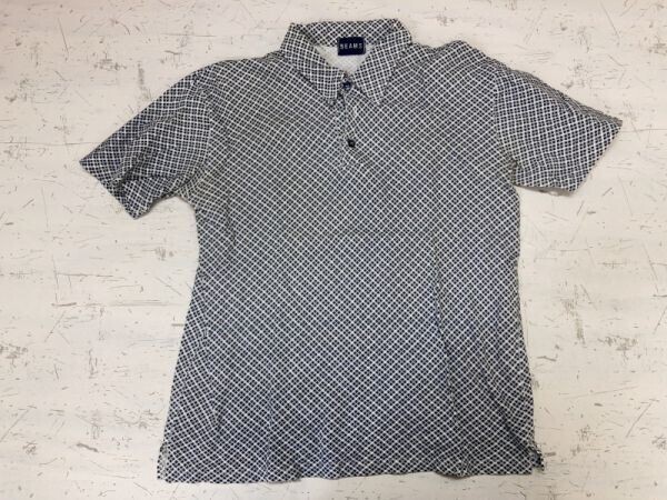 - オールド・ビームス BEAMS 幾何学模様 レトロ モード 半袖ポロシャツ メンズ 紺/白