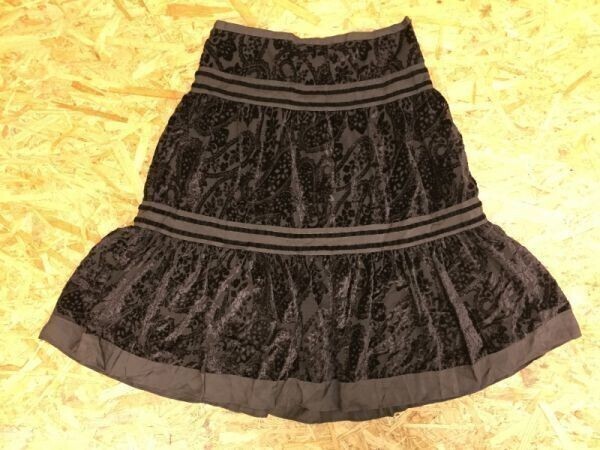 > ザラ ベーシック ZARA BASIC 光沢ベロア ペイズリー柄 ティアードスカート レディース レーヨン混合 M 茶色
