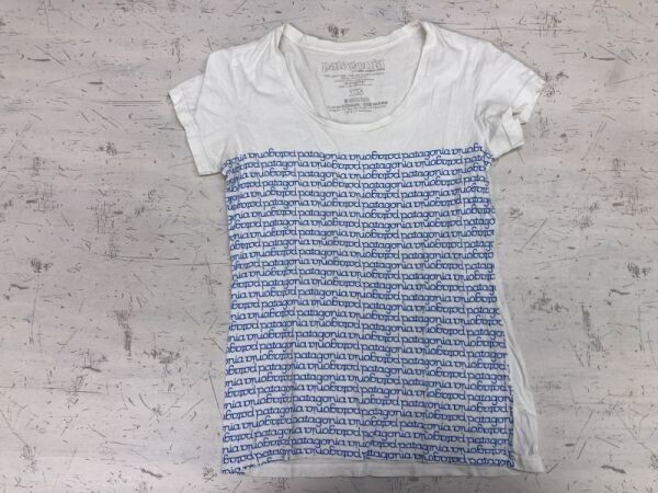 - パタゴニア Patagonia アウトドア アメカジ パネル英字ボーダー 半袖Tシャツ カットソー レディース オーガニックコットン XS 白