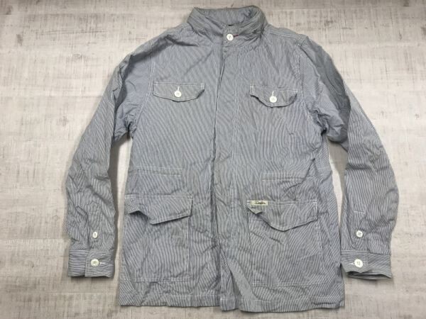 > The DUFFER of ST.GEORGE ザダファーオブセントジョージ コードレーン ストライプ M-65型 ミリタリージャケット メンズ フード内蔵 XL 水色