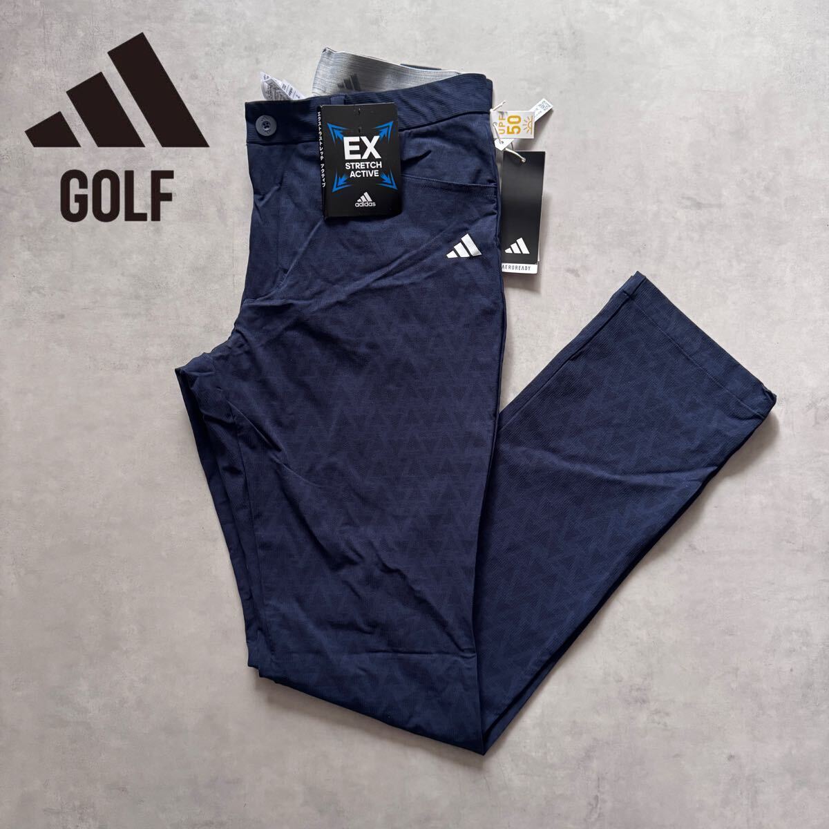 - 新品 88cm アディダス ゴルフ ロングパンツ ESAグラフィック プリントパンツ adidas golf ネイビー 紺 スポーツ 吸汗速乾 ストレッチ