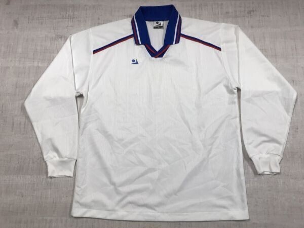 > KING&QUEEN JTTA オールド レトロ 卓球 ポリエステル100% スポーツ ジャージー ドライメッシュ 長袖スキッパーシャツ メンズ M 白