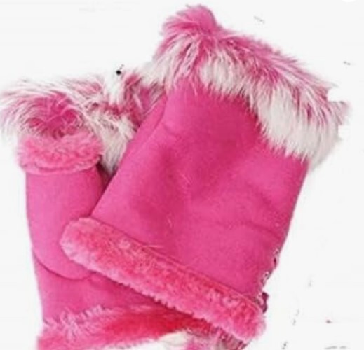 - 新品●ラビットファー付き スエード 指なしグローブ●手袋●ピンク