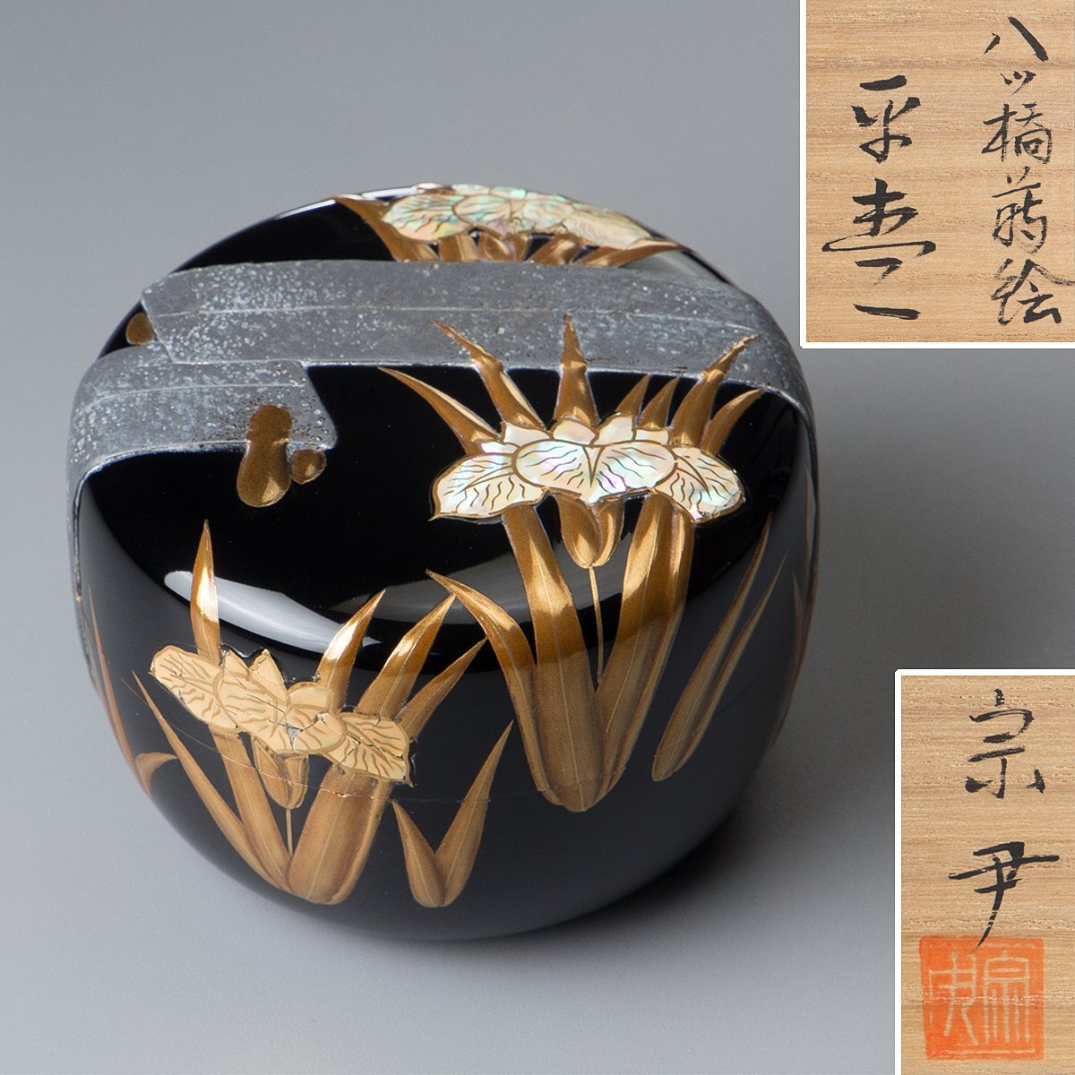 - 【五】中村宗尹 木製漆塗 『八ツ橋蒔絵平棗』 共箱 茶道具
