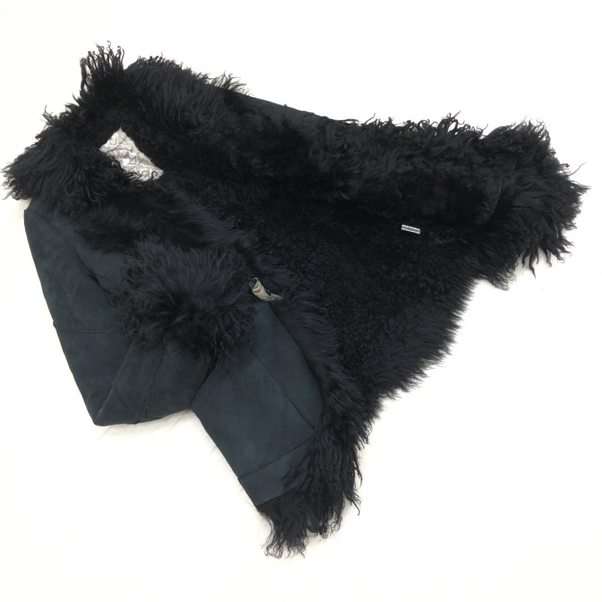 - ★goa ゴア 定価75,900円 巻き毛ファー 羊革 カルガンラム パッチワーク ムートンコート F 黒 ファーコート 毛皮 y2k archive グランジ