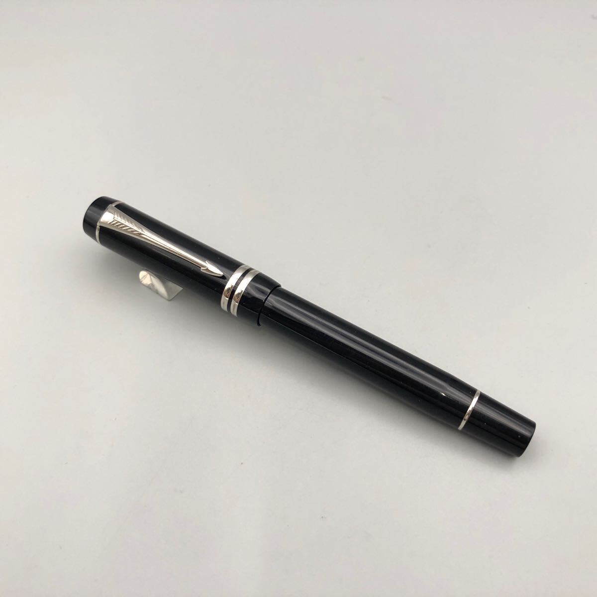 > ★F10049 PARKER DUOFOLD パーカー デュオフォールド 万年筆 M字 ブラック 黒 シルバー 18Kペン先 1点