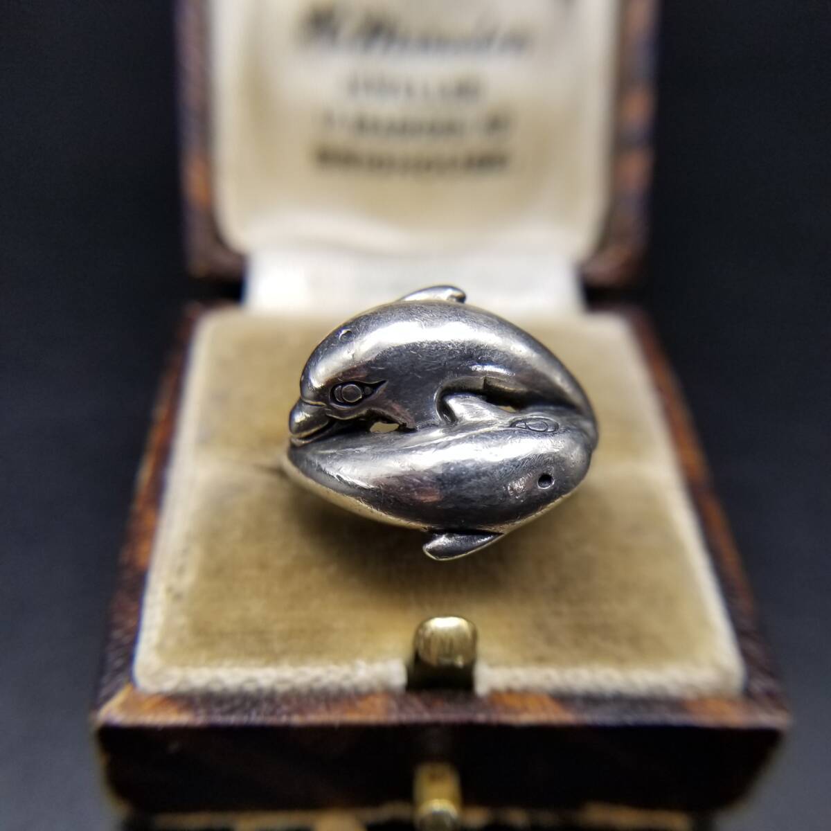 - Kabana 2頭のイルカ 925 シルバー ヴィンテージ ドルフィン リング 幅広 銀 指輪 海の生き物 キュート サウスウェスタンジュエリー Y24-X