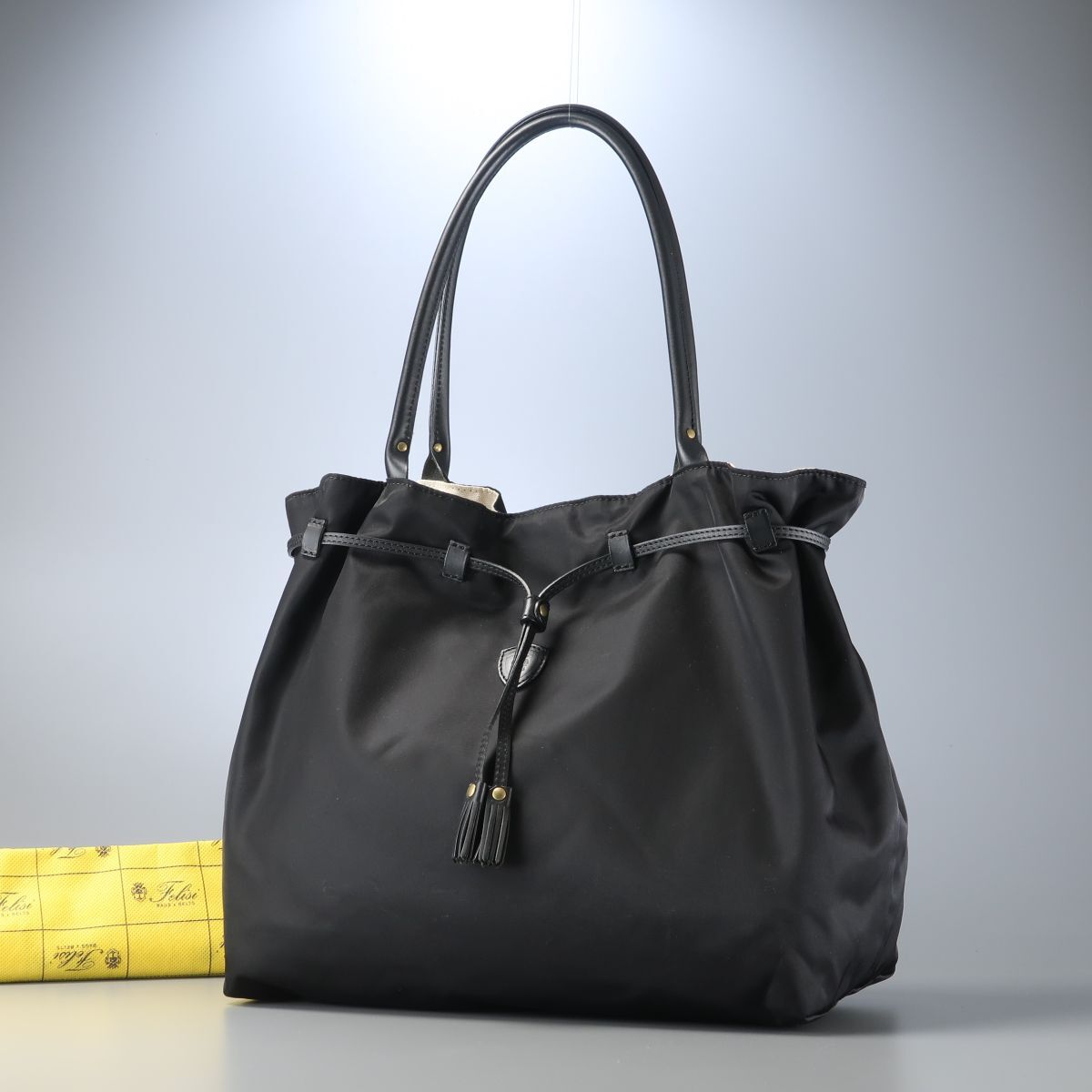 - GS4396▲イタリア製 Felisi フェリージ 10-97 ナイロン×レザー トートバッグ A4対応 巾着型 タッセル 肩掛け 鞄 ブラック